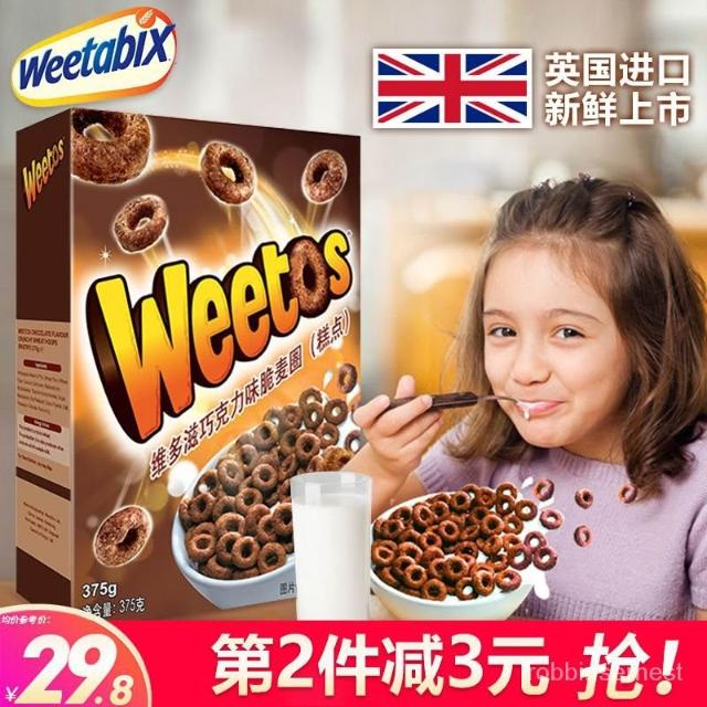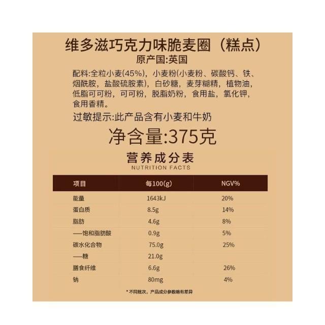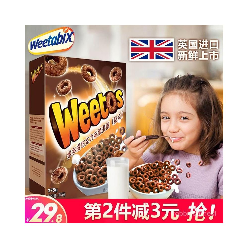 精選 優選 麥片 英國進口 維多麥巧剋力味脆麥圈375g全穀物兒童早餐麥片圈圈