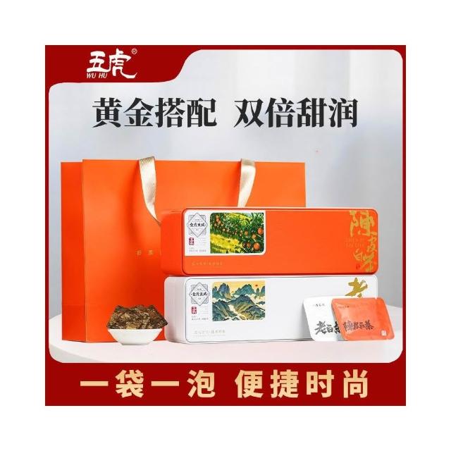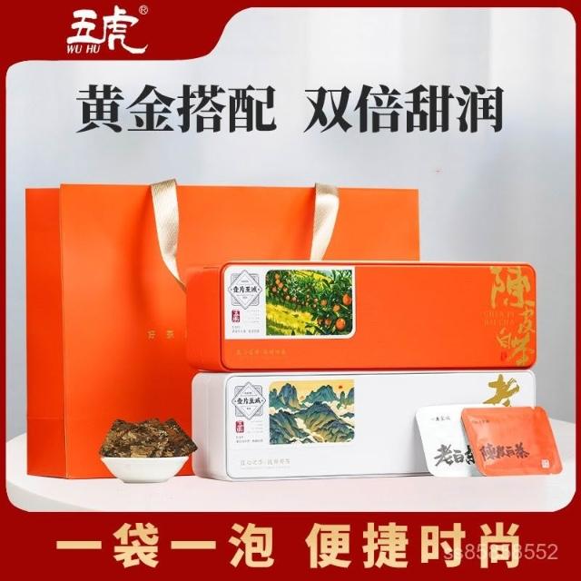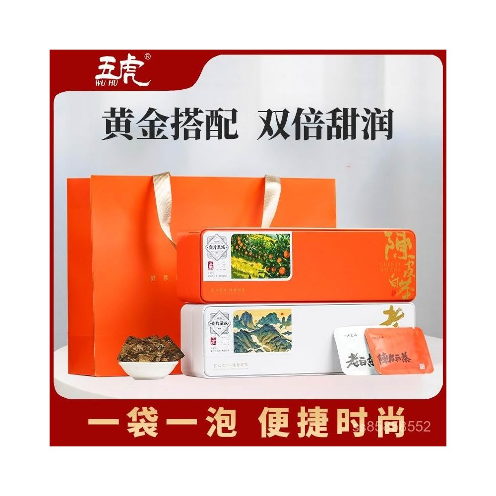 鵬鵬嚴選 五虎正宗陳皮白茶老白茶茶葉新會陳皮白茶福鼎老白茶高檔禮盒裝