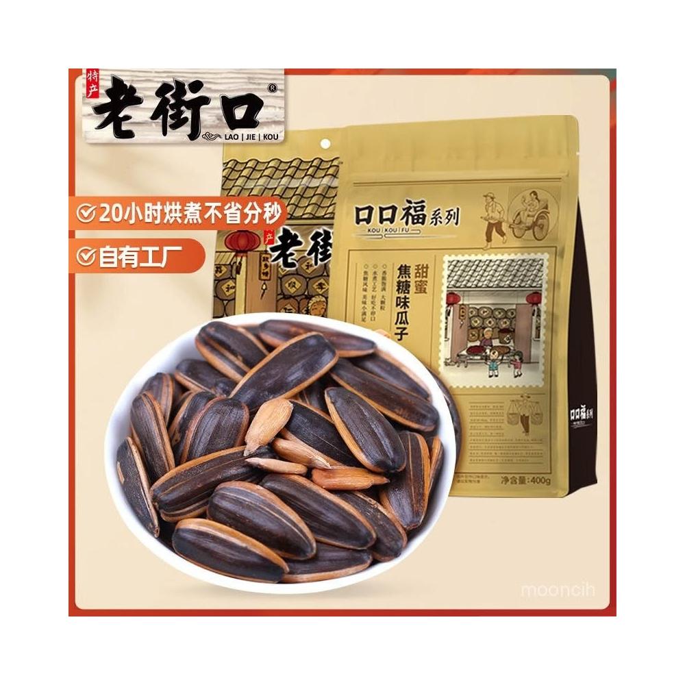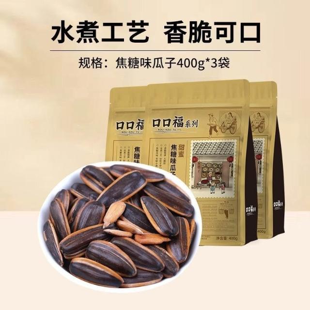 細B精品 老街口 焦糖/山核桃/五香味瓜子400g*3袋新貨葵花籽堅果炒貨零食
