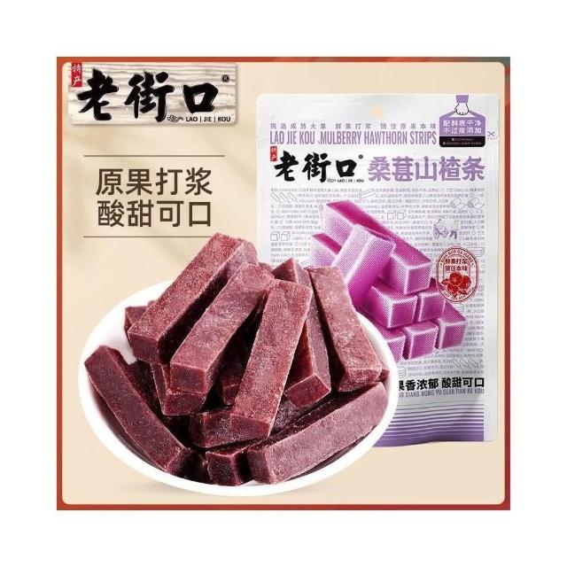 細B精品 老街口桑葚味山楂條250g*3袋蜜餞果脯果幹痠甜山楂片休閒零食小喫
