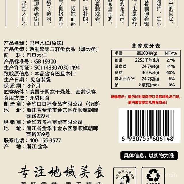 細B精品 老街口 原味巴旦木250g袋裝鹽焗味巴旦木仁大杏仁堅果炒貨