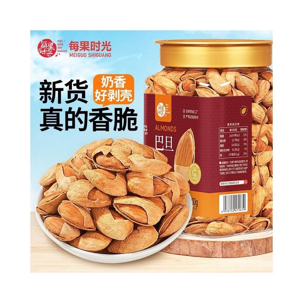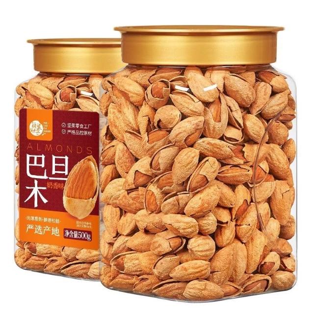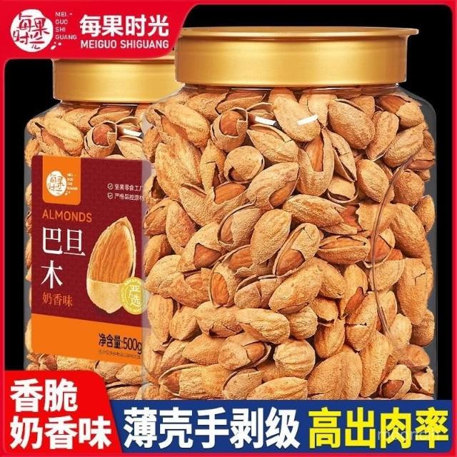豪豪甄選 每果時光新貨帶殻巴旦木500g罐裝大顆粒奶香味巴坦木堅果炒貨零食