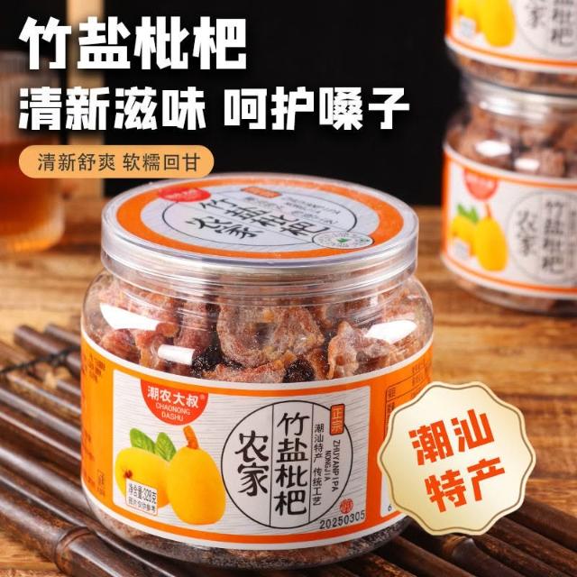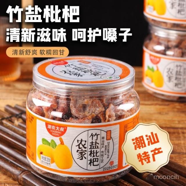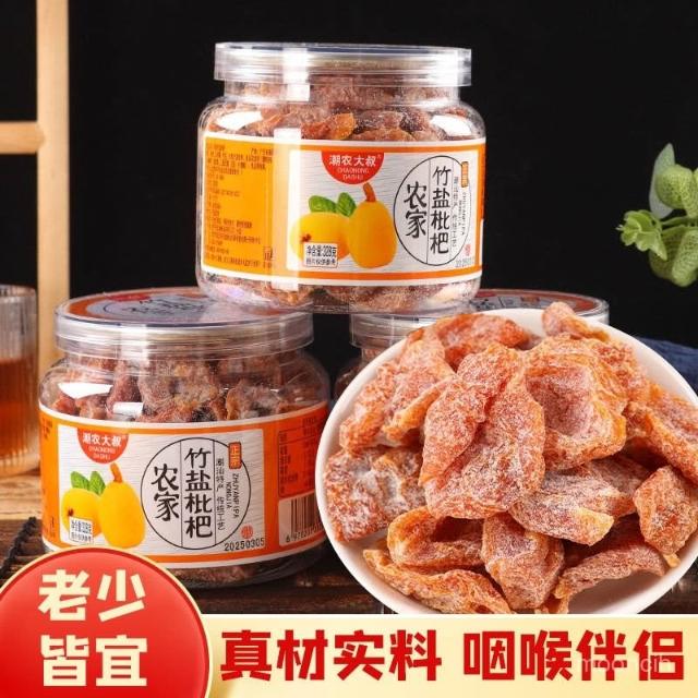 豪豪甄選 農家竹鹽枇杷幹潮汕特産新鮮品質無核卽食辦公室休閒零食果脯果幹