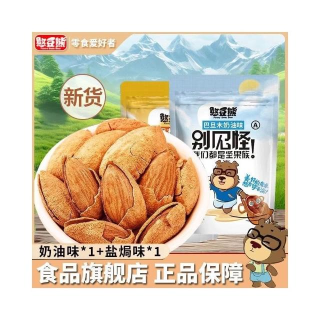 豪豪甄選 憨豆熊巴旦木500g新貨奶油味鹽焗味薄殻堅果炒貨休閒零食批髮250g
