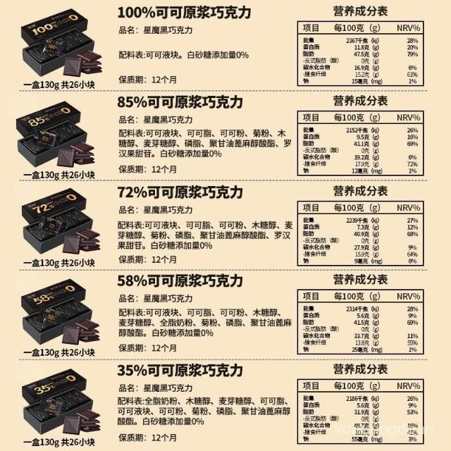 心心相印 黑巧克力純可可脂俄羅斯風味健身休閒代餐零食