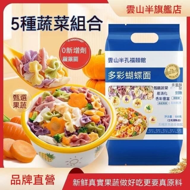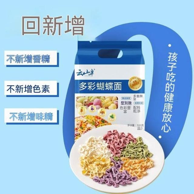 亮亮優選雲山半0添加劑多彩蝴蝶面5種果蔬面兒童營養蝴蝶麪條早餐五彩掛麪