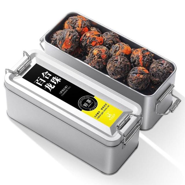 肖肖優選雲南滇紅百合龍珠茶葉蜜香甜潤球形龍珠古樹紅茶濃香型新茶飯盒裝