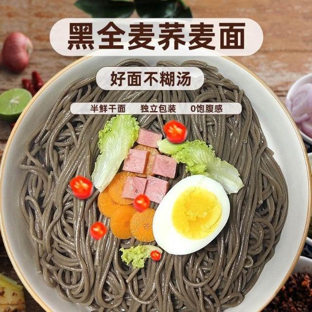 文文優選鮮小多0脂肪黑全麥蕎麥麪蕎麥麪半乾鮮麪條