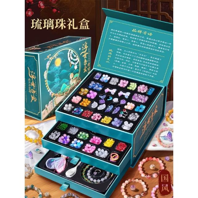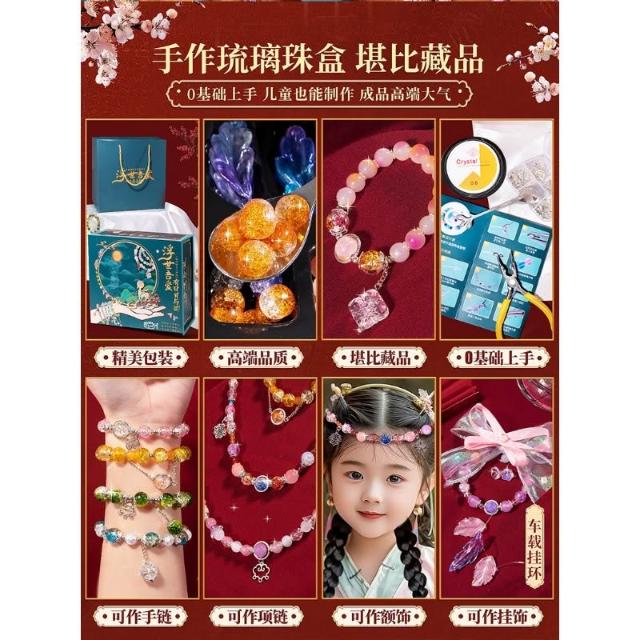 國潮風女孩子生日禮物穿手鍊古風串珠兒童玩具琉璃首飾DIY手工製