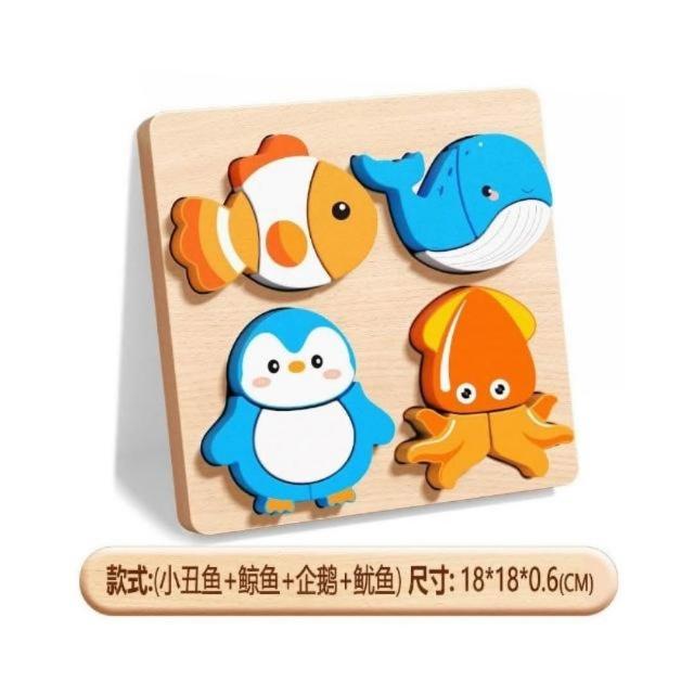 兒童拼圖3d立體玩具蒙氏木質寶寶動物積木識字1到3歲現貨
