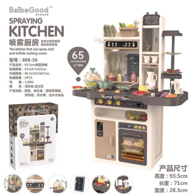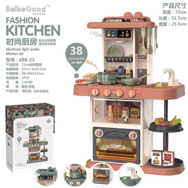 贝比谷女孩仿真厨具电动喷雾做饭过家家儿童出水厨房玩具套装批发