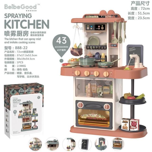 贝比谷女孩仿真厨具电动喷雾做饭过家家儿童出水厨房玩具套装批发