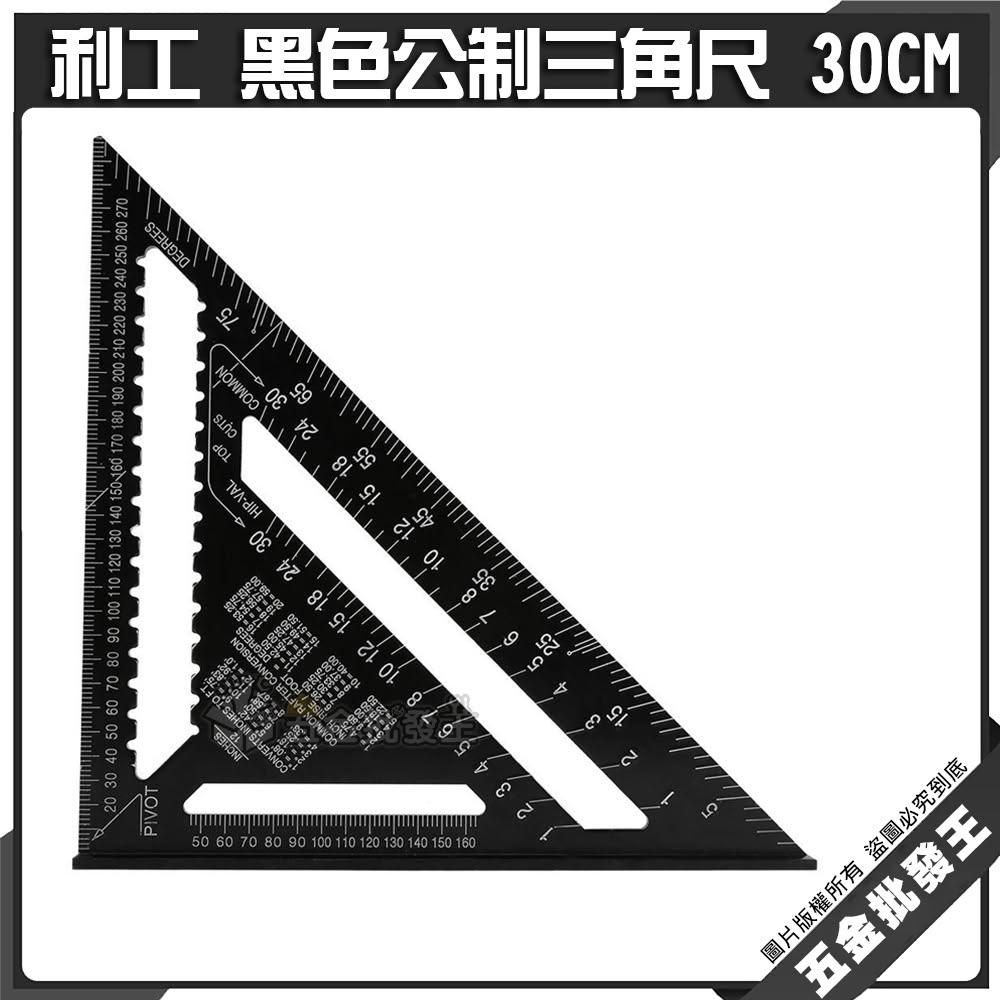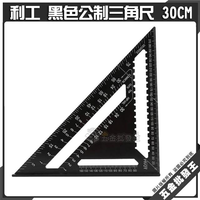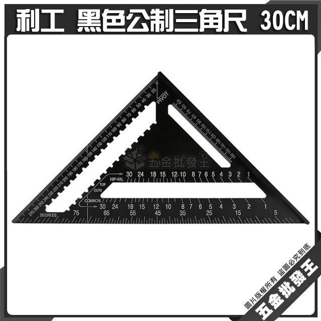利工 黑色公制三角尺 30CM 三角尺 木工專用尺 學習繪圖用 90度 直角尺 45度角尺 12寸 三角板