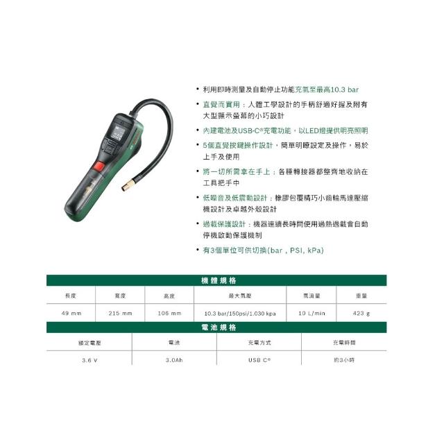 BOSCH 博世德國 BOSCH 博世 EasyPump 3.6V 多功能電動打氣機 充氣 輪胎充氣 充電式壓縮空氣泵浦