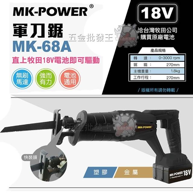 MK-POWER 軍刀鋸 MK-68A 無刷 18V 軍刀鋸 可直上牧田18V電池用 馬刀鋸 往復鋸