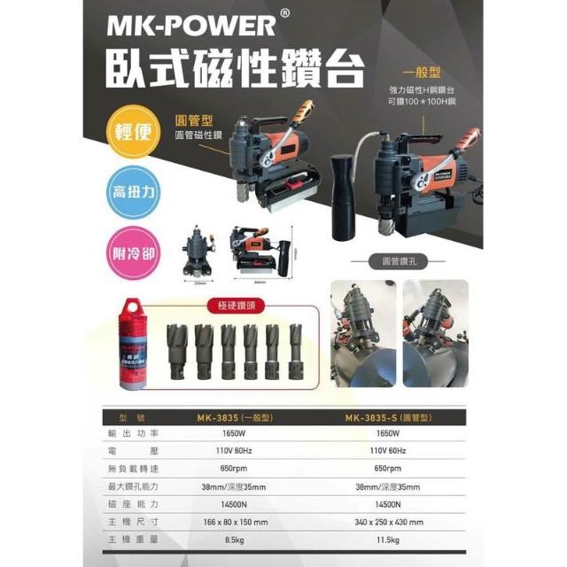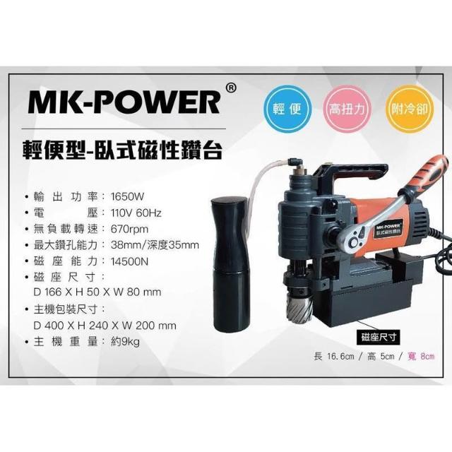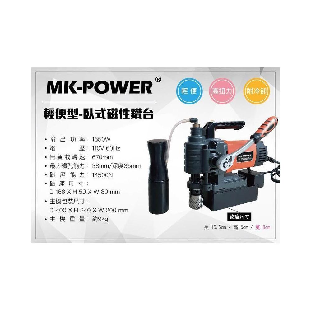 MK-POWER 臥式磁性鑽台 MK-3835 輕便型 AC110V 一般型臥式磁性鑽孔機 磁性