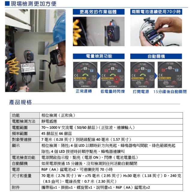 HIOKIHIOKI 相序計 PD3129-10 相位檢測 安全性佳 檢查 非接觸相序計