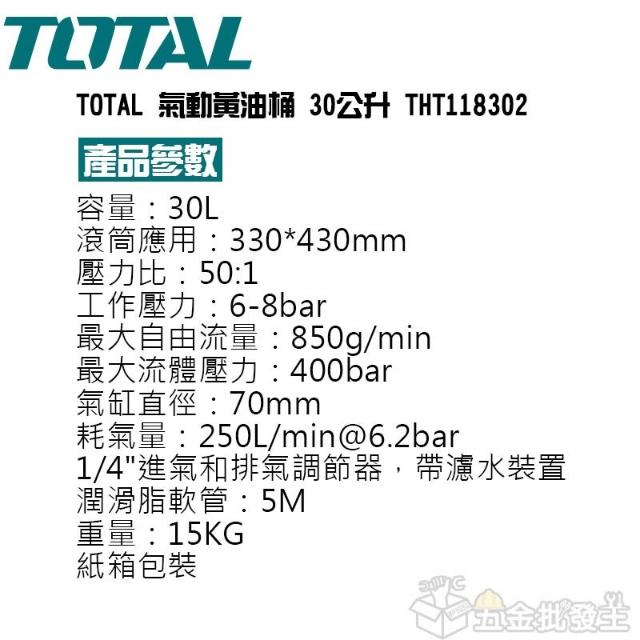 TOTAL 氣動黃油桶 30公升 THT118302 黃油槍 附濾水器裝置 黃油桶