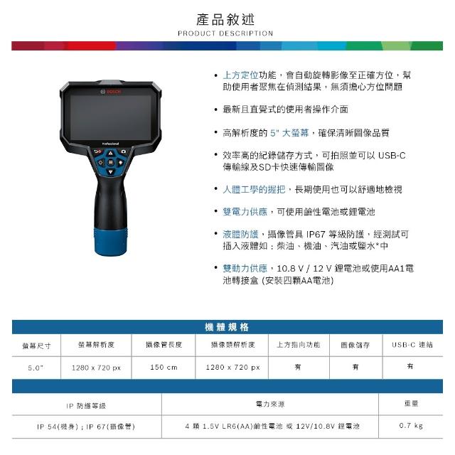 BOSCH 博世【五金批發王】BOSCH 管路檢視攝像儀 GIC 5-27 C 管路攝影機 內視鏡 管道檢測 水電工具 工業檢測