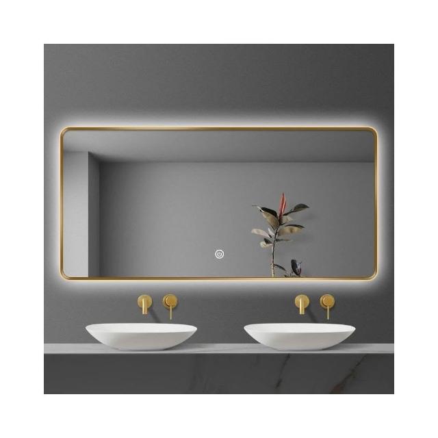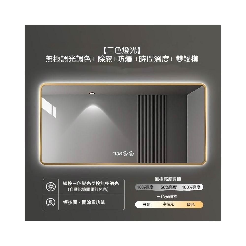 簡約輕奢方形鋁框浴室鏡 背光智能鏡 LED發光鏡 衛浴燈鏡 網美化妝鏡 發光鏡子 除霧鏡子 洗手間衛生間鏡子高清無銅鏡子