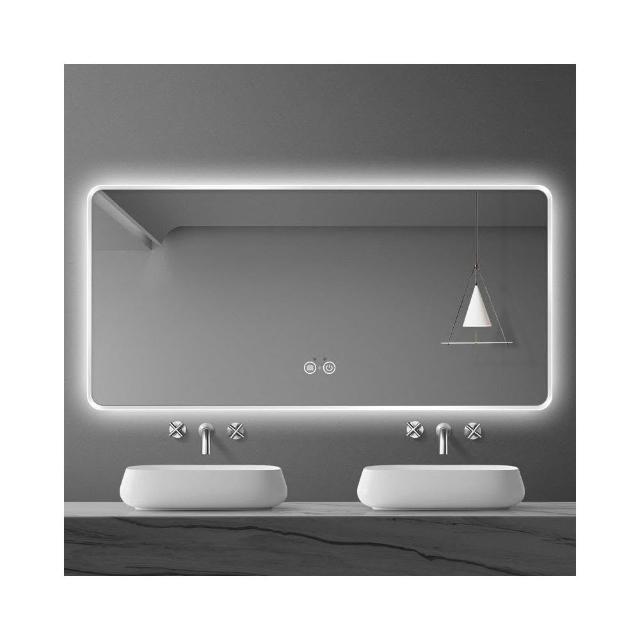 簡約輕奢方形鋁框浴室鏡 背光智能鏡 LED發光鏡 衛浴燈鏡 網美化妝鏡 發光鏡子 除霧鏡子 洗手間衛生間鏡子高清無銅鏡子