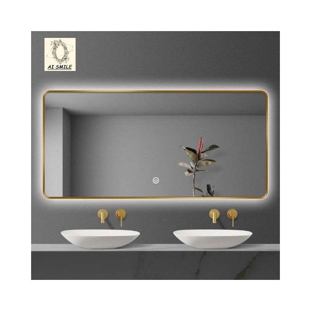 簡約輕奢方形鋁框浴室鏡 背光智能鏡 LED發光鏡 衛浴燈鏡 網美化妝鏡 發光鏡子 除霧鏡子 洗手間衛生間鏡子高清無銅鏡子