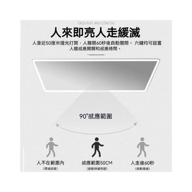 芮芮商行免打孔方形智能浴室鏡子 LED燈鏡除霧鏡發光鏡 網美化妝鏡智能鏡掛壁鏡衛浴臥室鏡子 洗手間鏡 無銅高清防爆鏡