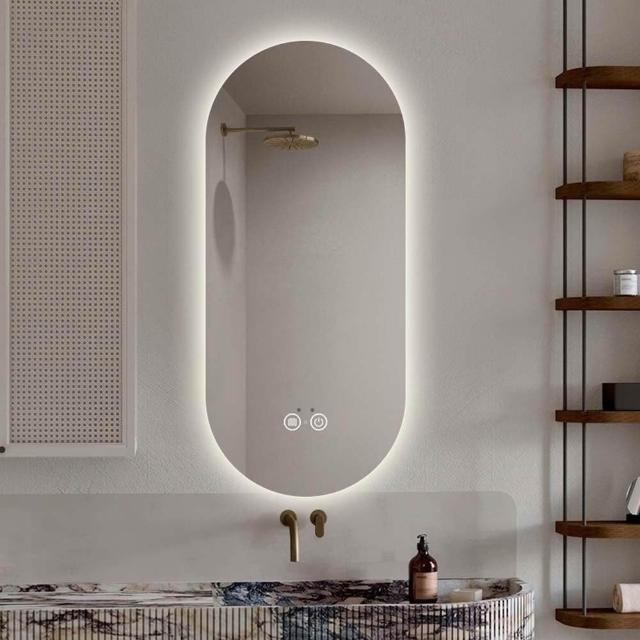60*90cm 110V電壓 智能鏡 背光橢圓跑道鏡 三色光 化妝鏡 浴室鏡 除霧鏡