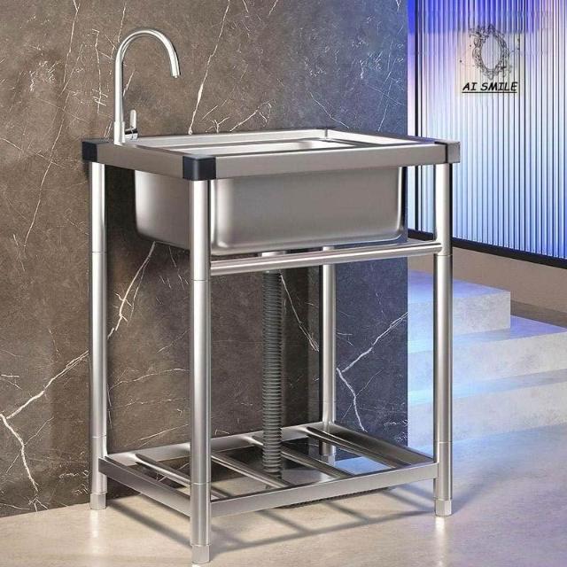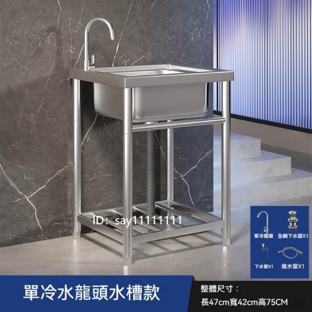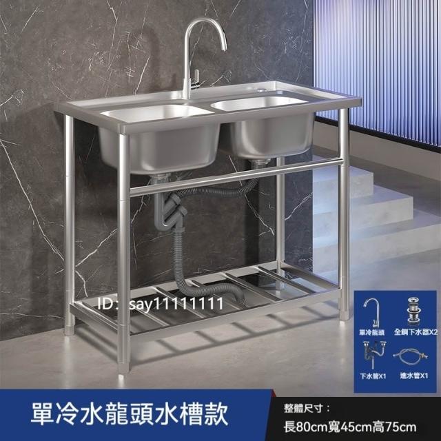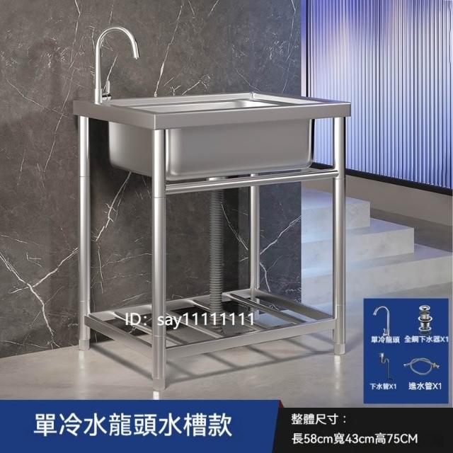 不銹鋼水槽 商用廚房洗菜盆304不銹鋼洗手盆帶支架一體洗碗池家用水槽大單槽