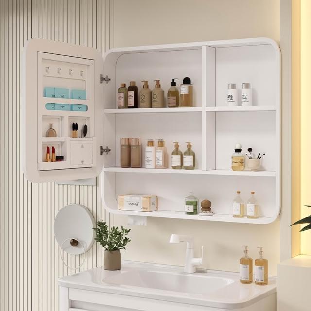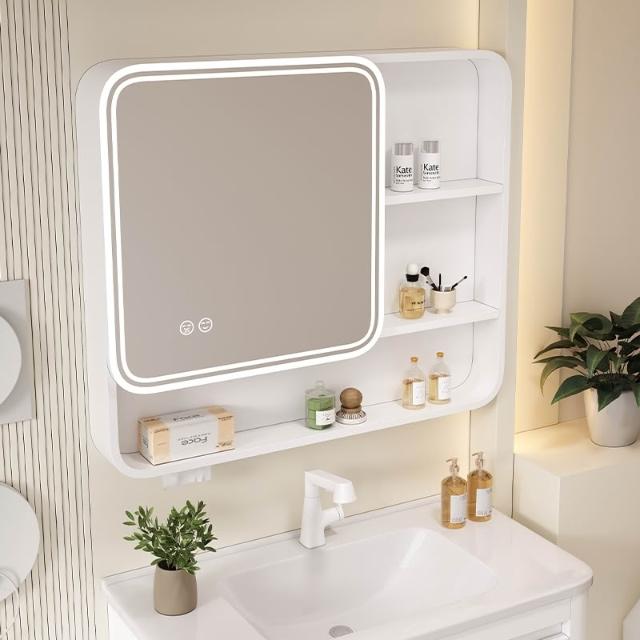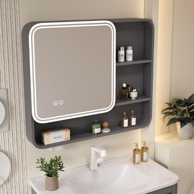 芮芮商行小戶型掛墻式浴室鏡櫃圓弧帶美妝架加厚太空鋁衛生間智能鏡子單獨小戶型 浴室鏡櫃 智能鏡櫃 智慧鏡櫃 浴室鏡子