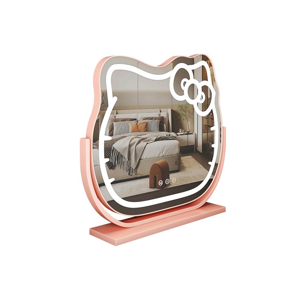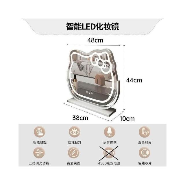 芮芮商行110V鏡子kitty化妝鏡led帶燈臺式桌面智能充電臥室梳妝鏡凱蒂貓網紅鏡 桌面鏡 化妝鏡 美妝鏡