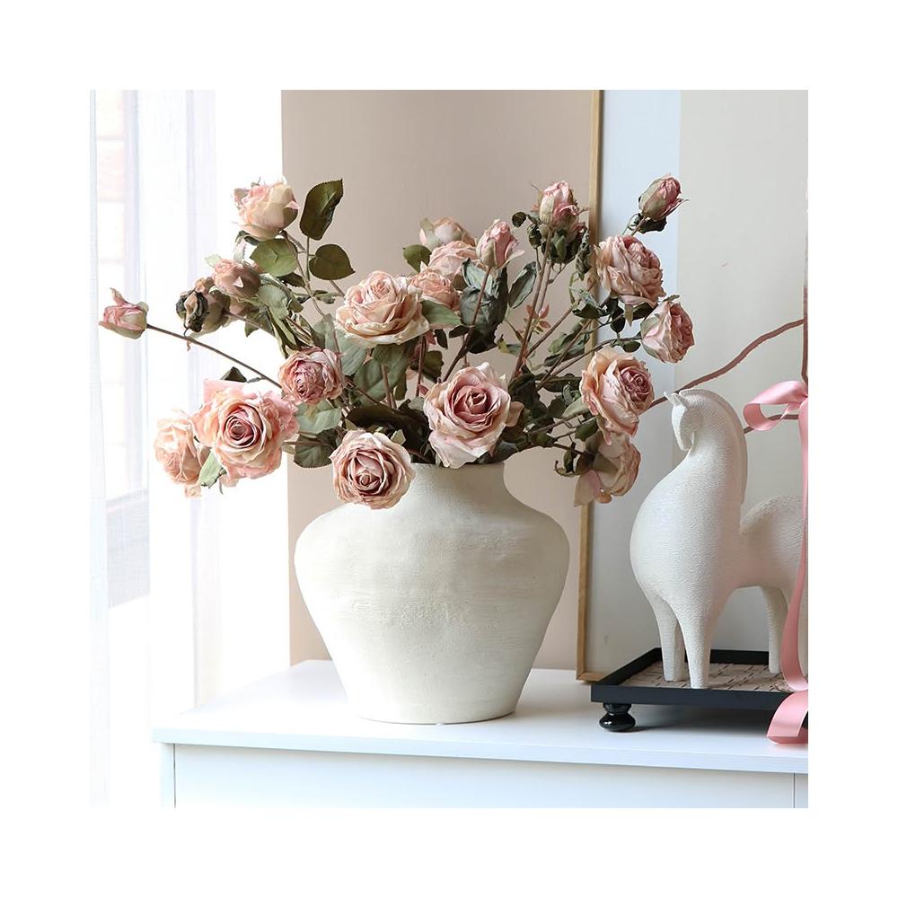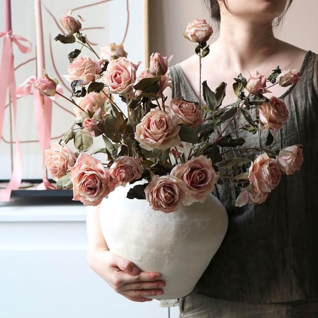 法式焦邊玫瑰假花仿真花擺件客廳餐桌裝飾花藝高級感擺設