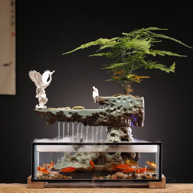 玻璃小型金魚缸創意流水生財擺件循環辦公室桌面客廳開業送禮物品