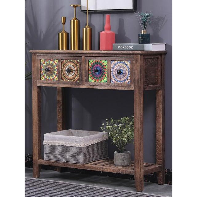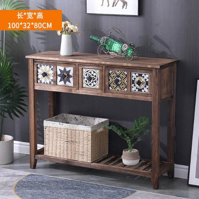 美式實木玄關櫃窄長條供桌端景臺櫃條幾桌靠墻家用走廊過道門廳櫃