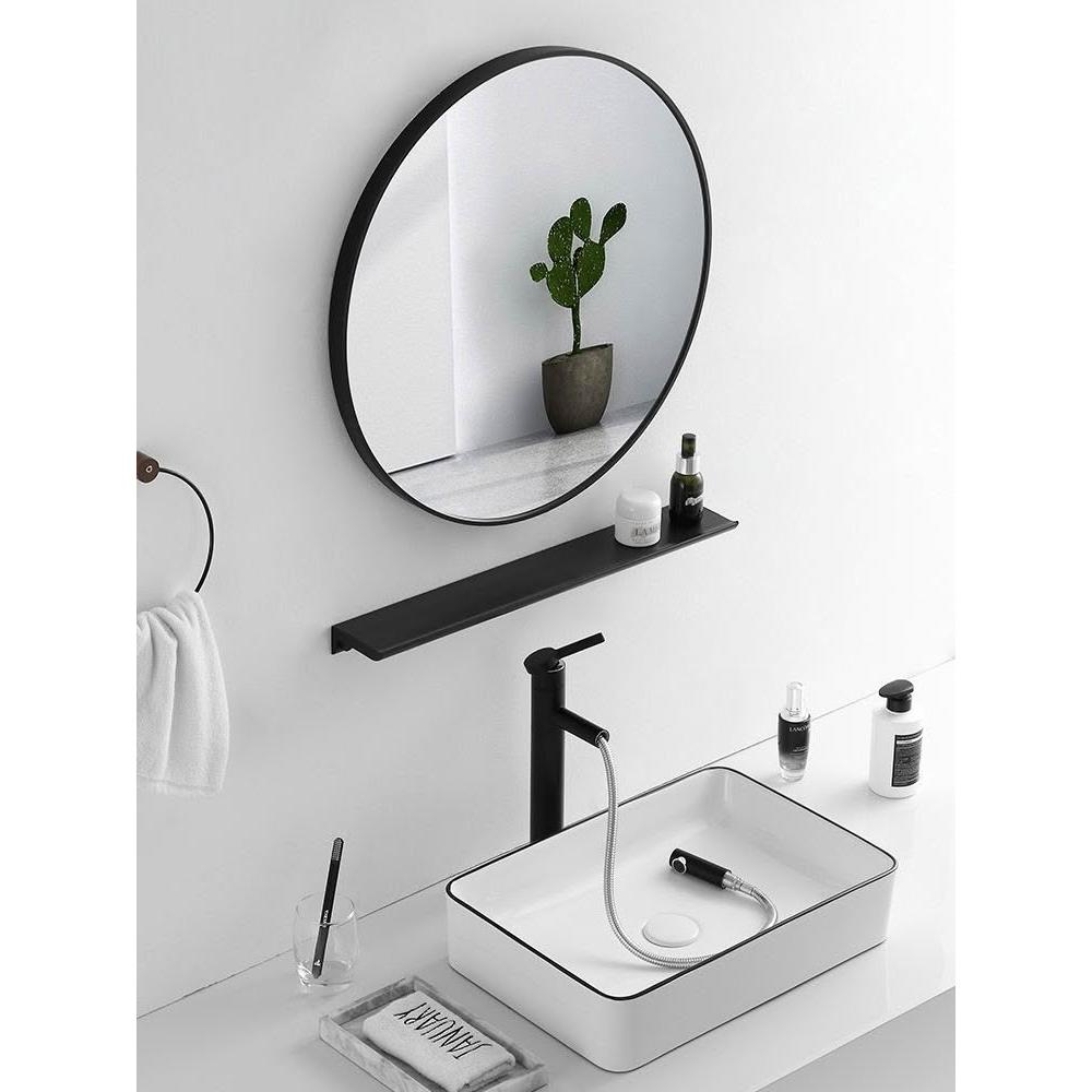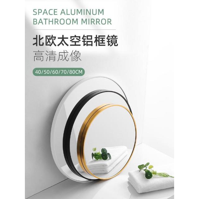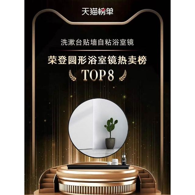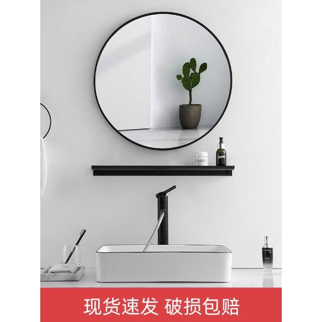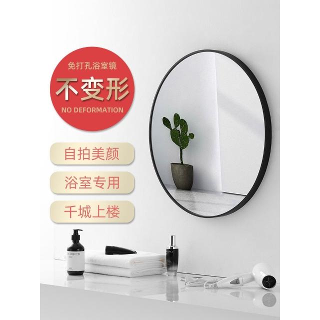 浴室鏡免打孔洗漱臺玻璃鏡衛生間廁所鏡子化妝鏡壁掛貼墻自粘圓鏡