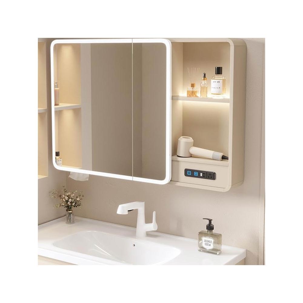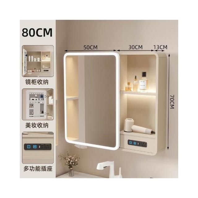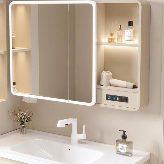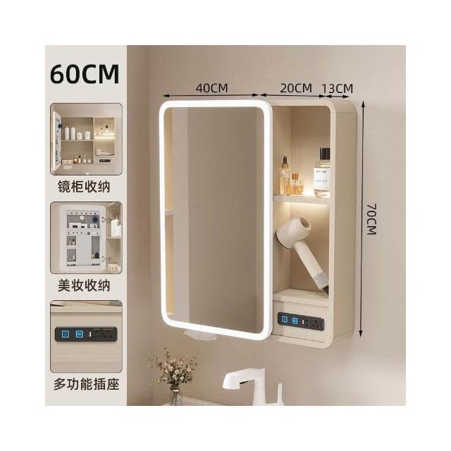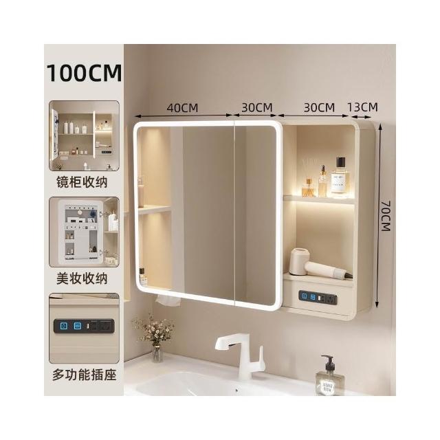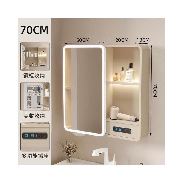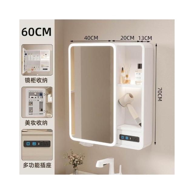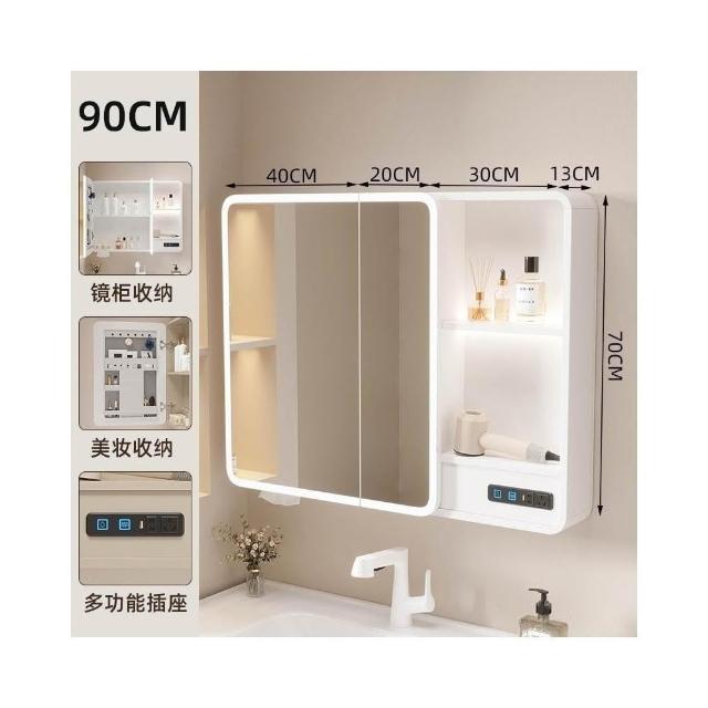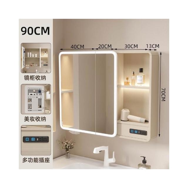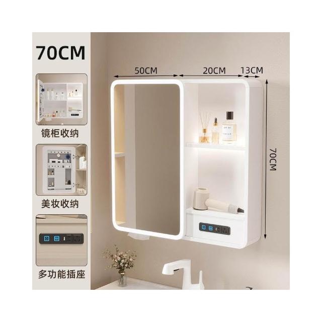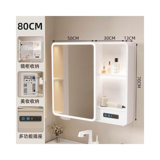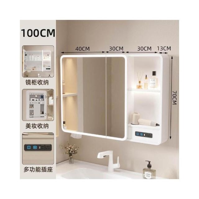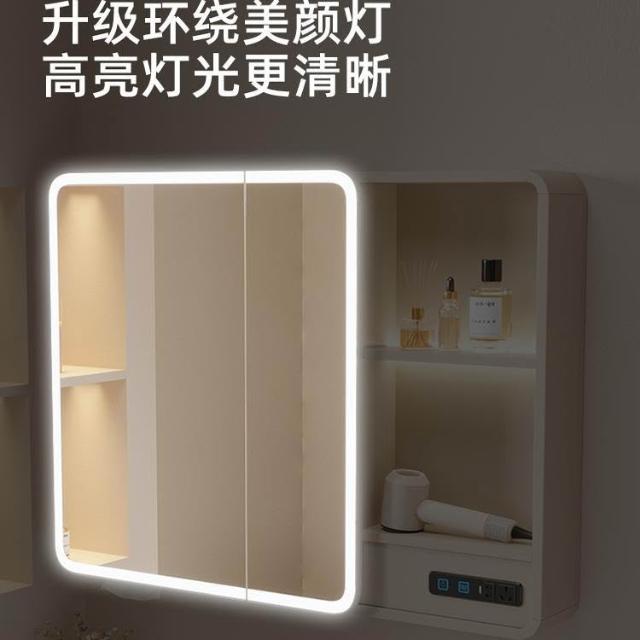 太空鋁浴室鏡櫃帶插座智能燈光儲物櫃衛生間掛墻式帶梳妝鏡抽紙口