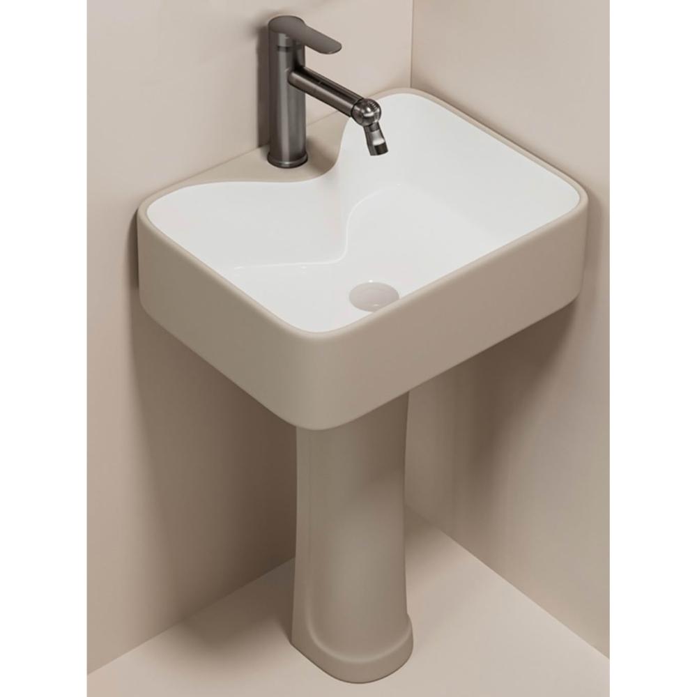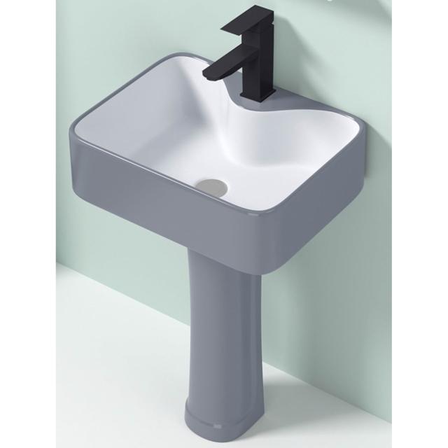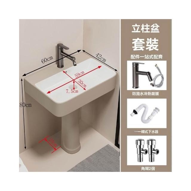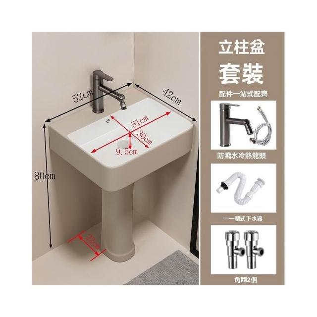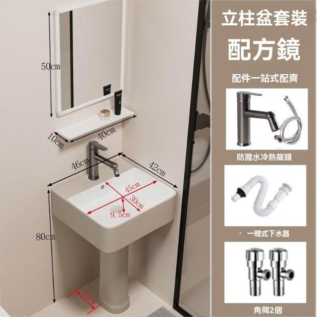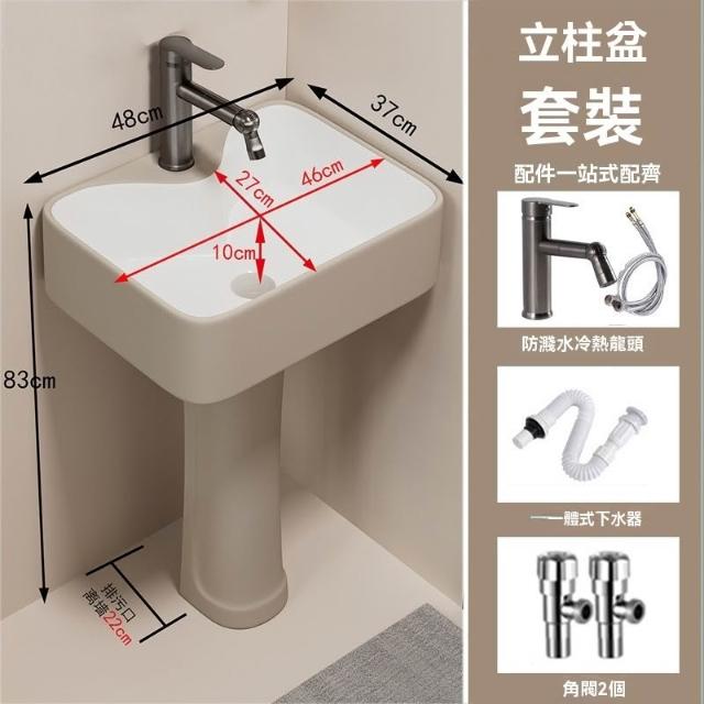 小戶型一體落地式陶瓷立柱盆窄邊洗手盆陽台衛生間奶油風洗漱臉盆