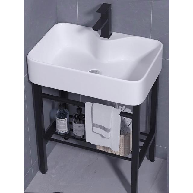 小戶型一體落地式不銹鋼支架陶瓷洗手盆衛生間陽台牆角掛盆洗漱台 面盆
