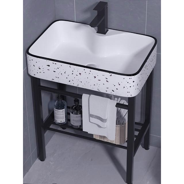 小戶型一體落地式不銹鋼支架陶瓷洗手盆衛生間陽台牆角掛盆洗漱台 面盆