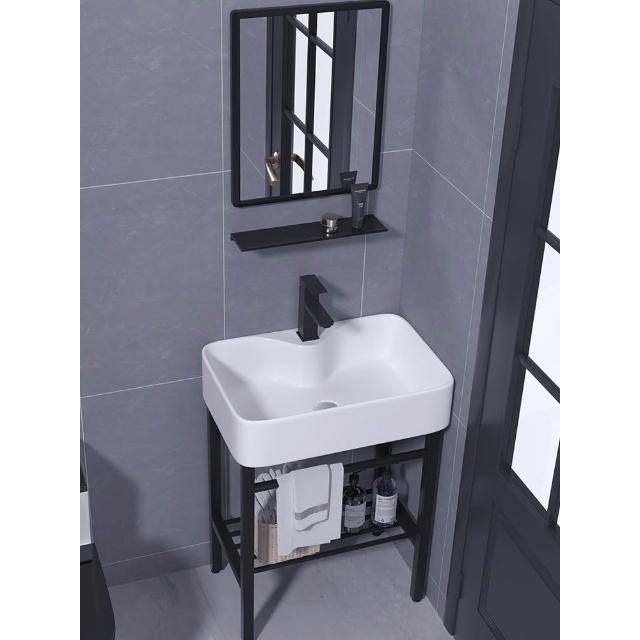 小戶型一體落地式不銹鋼支架陶瓷洗手盆衛生間陽台牆角掛盆洗漱台 面盆