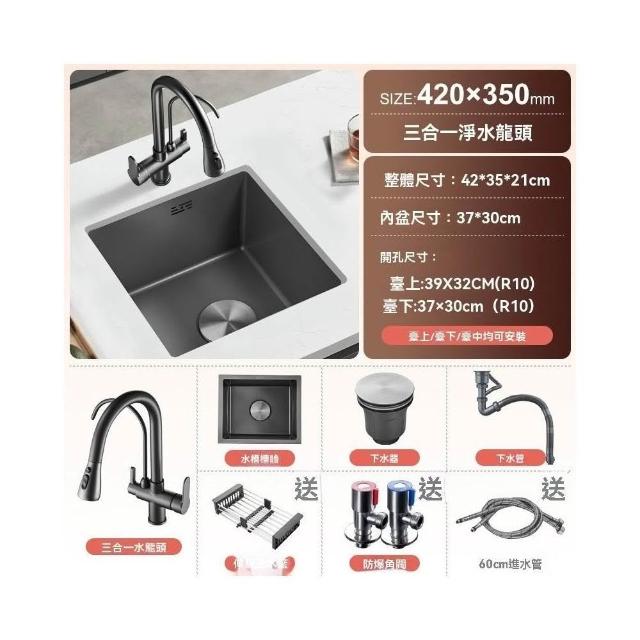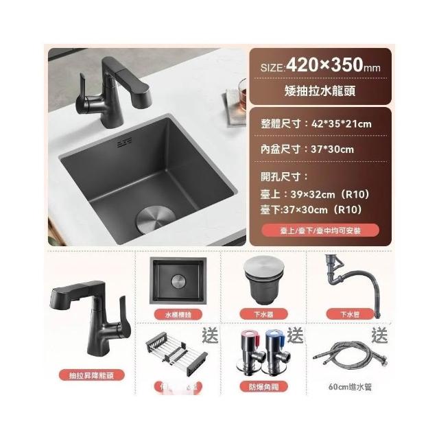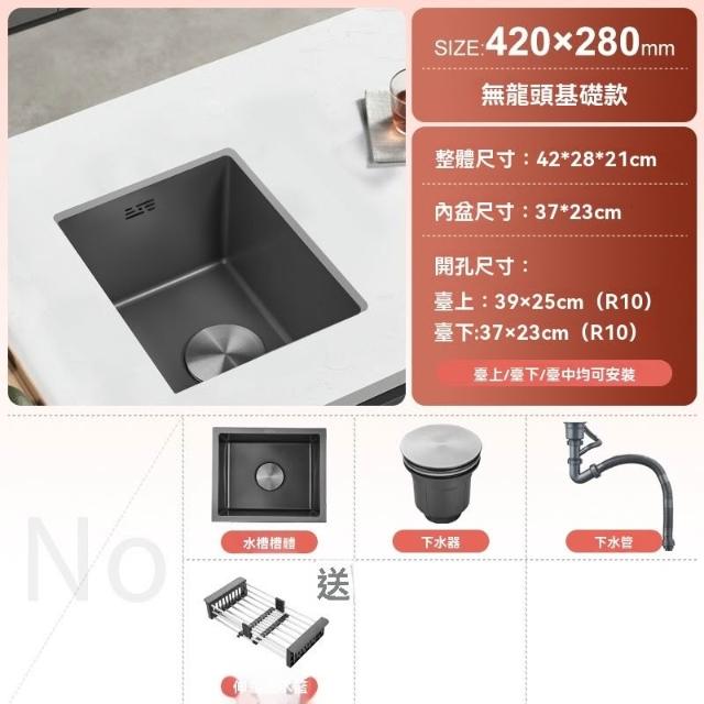 芮芮商行槍灰色納米吧台水槽單槽小尺寸手工槽304不銹鋼西廚房洗菜盆台下