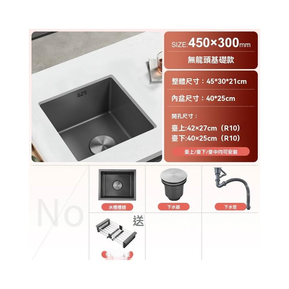 芮芮商行 槍灰色納米吧台水槽單槽小尺寸手工槽304不銹鋼西廚房洗菜盆台下盆