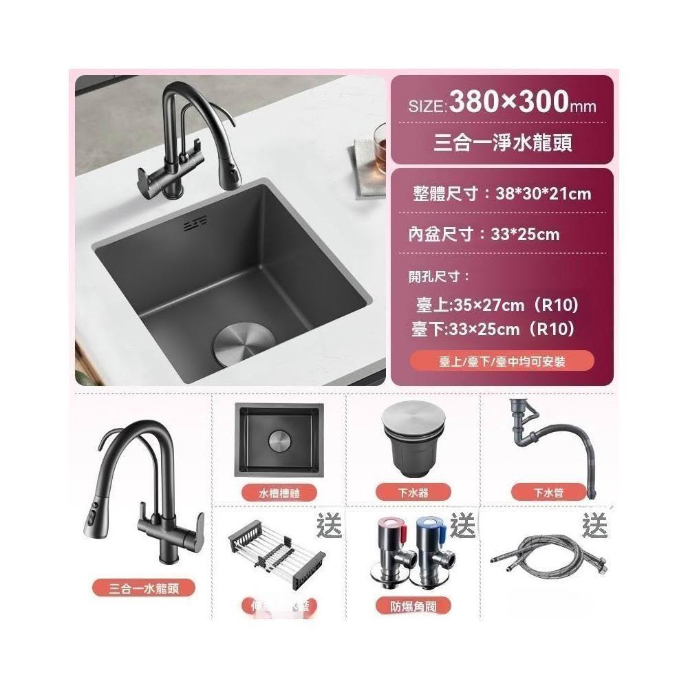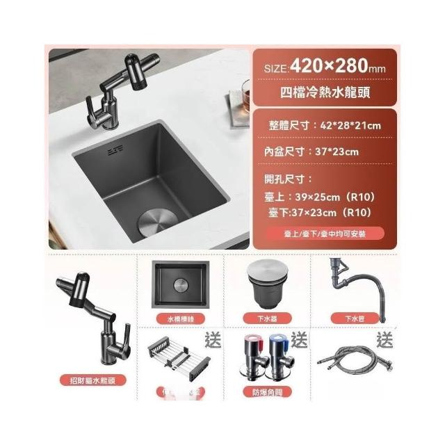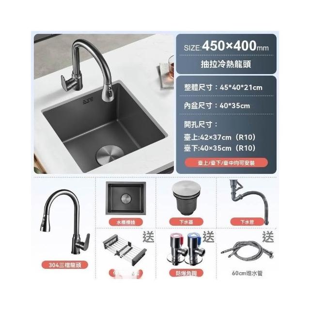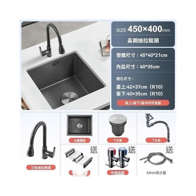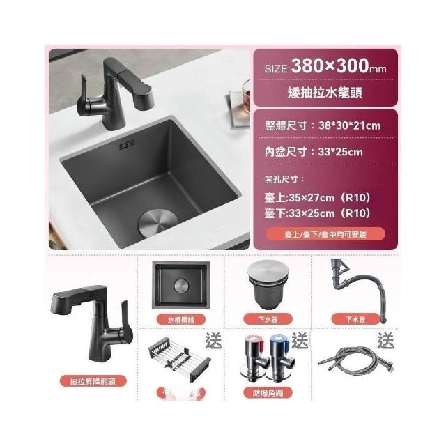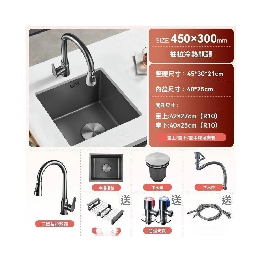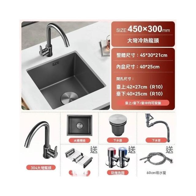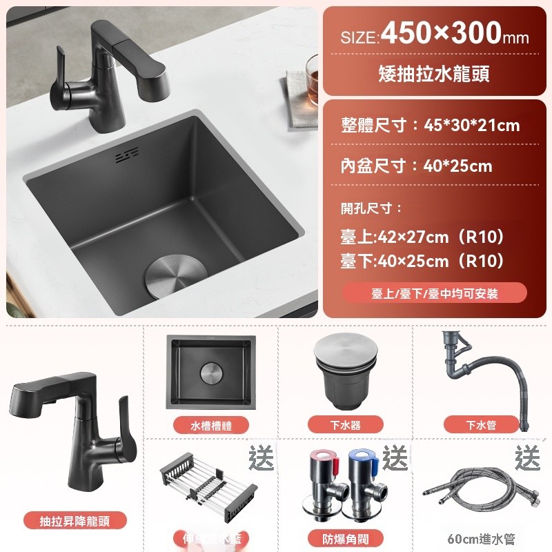 芮芮商行 槍灰色納米吧台水槽單槽小尺寸手工槽304不銹鋼西廚房洗菜盆台下盆