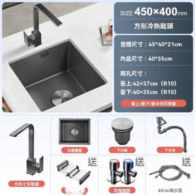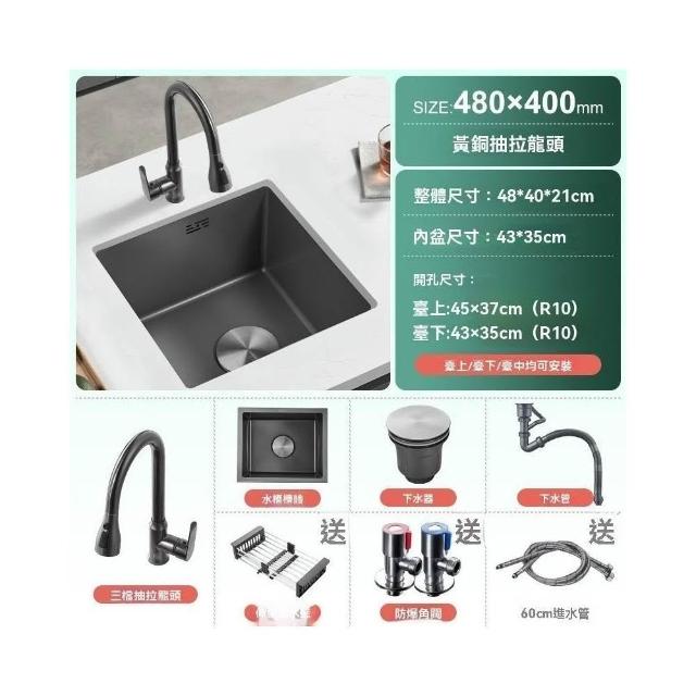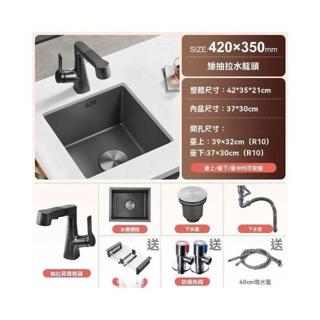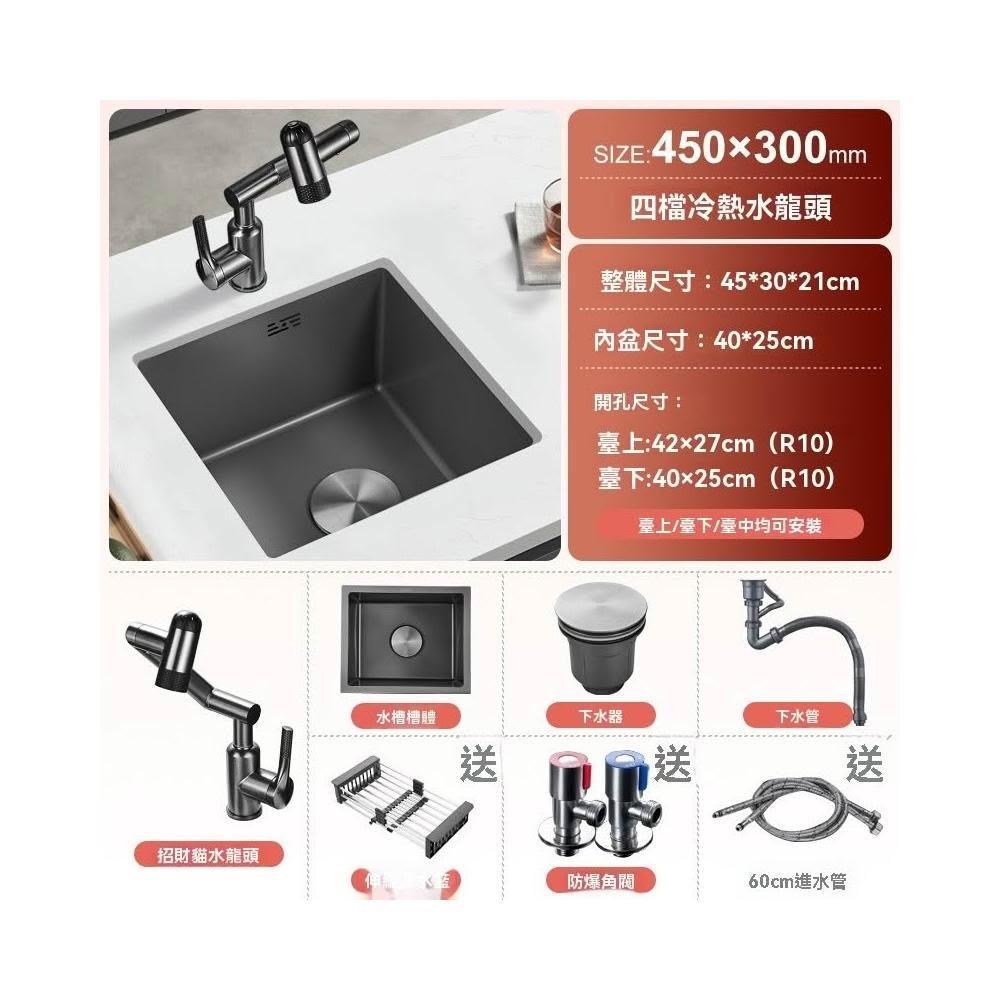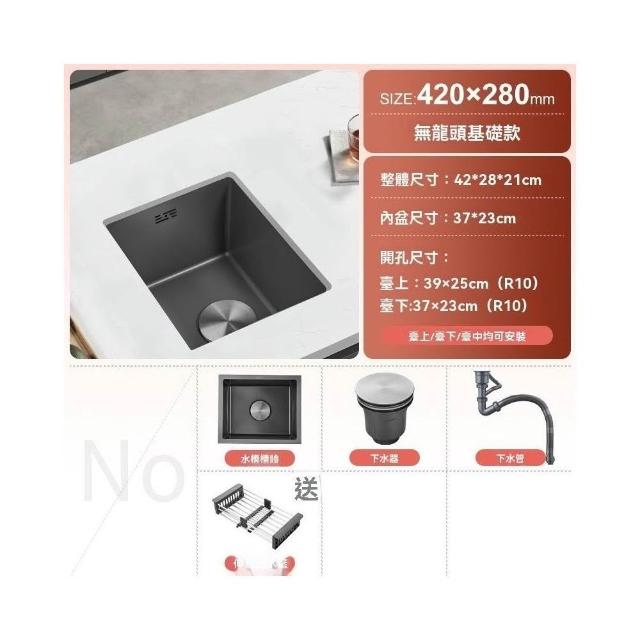 芮芮商行 槍灰色納米吧台水槽單槽小尺寸手工槽304不銹鋼西廚房洗菜盆台下盆