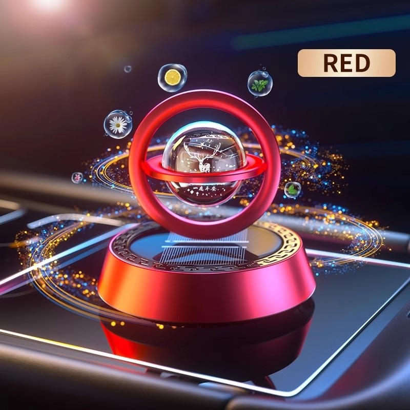 芮芮商行汽車香薰香水一鹿太陽能雙環懸浮旋轉香薰車載香水座式持久淡香