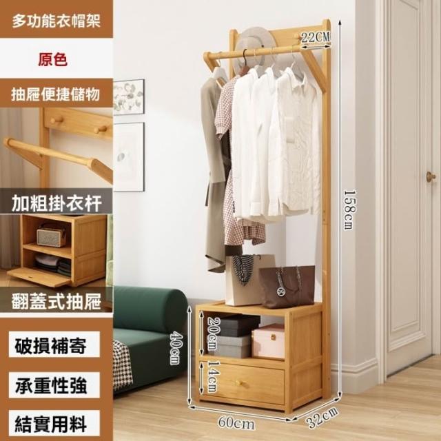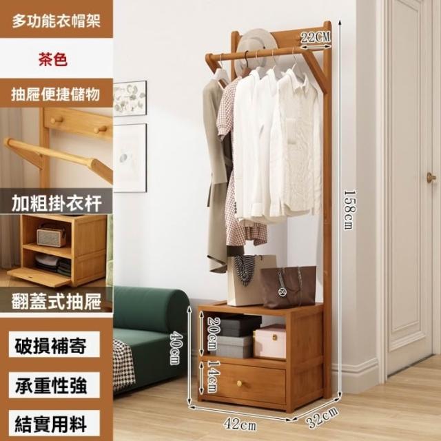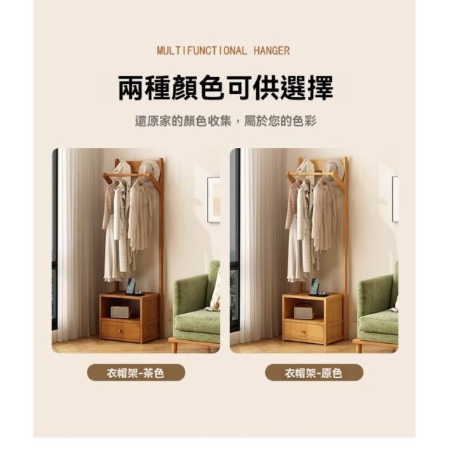 芮芮商行 掛衣架床頭櫃一體實木衣架落地臥室家用床邊衣服掛架置物架衣帽架