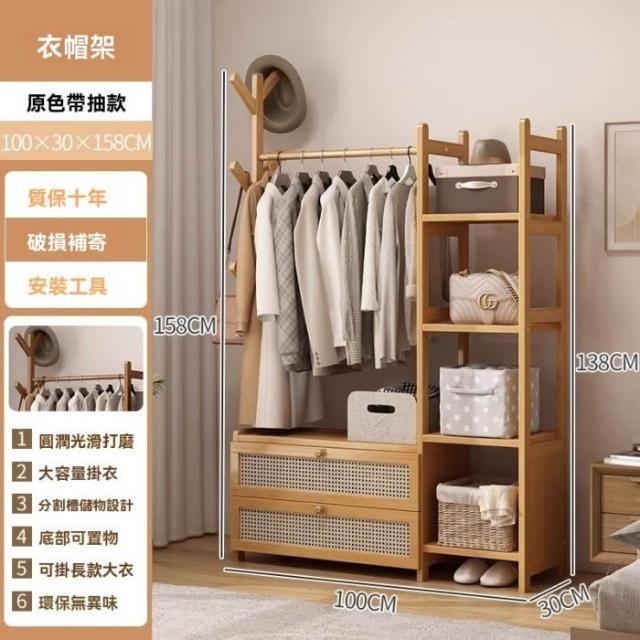 芮芮商行 掛衣架床頭櫃一體實木衣架落地臥室家用床邊衣服掛架置物架衣帽架