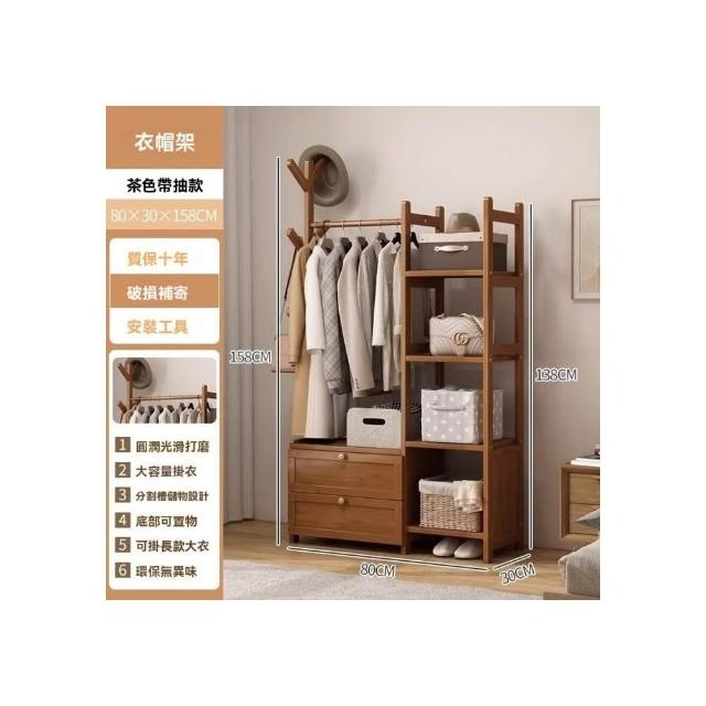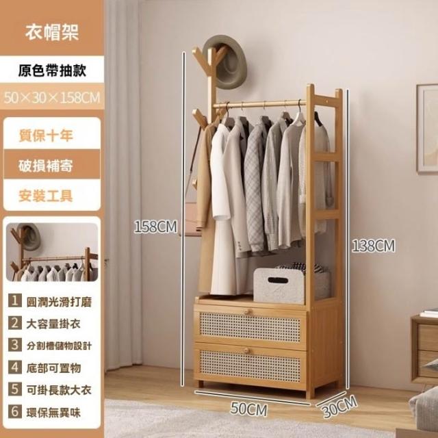 芮芮商行 掛衣架床頭櫃一體實木衣架落地臥室家用床邊衣服掛架置物架衣帽架