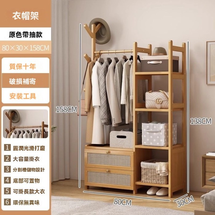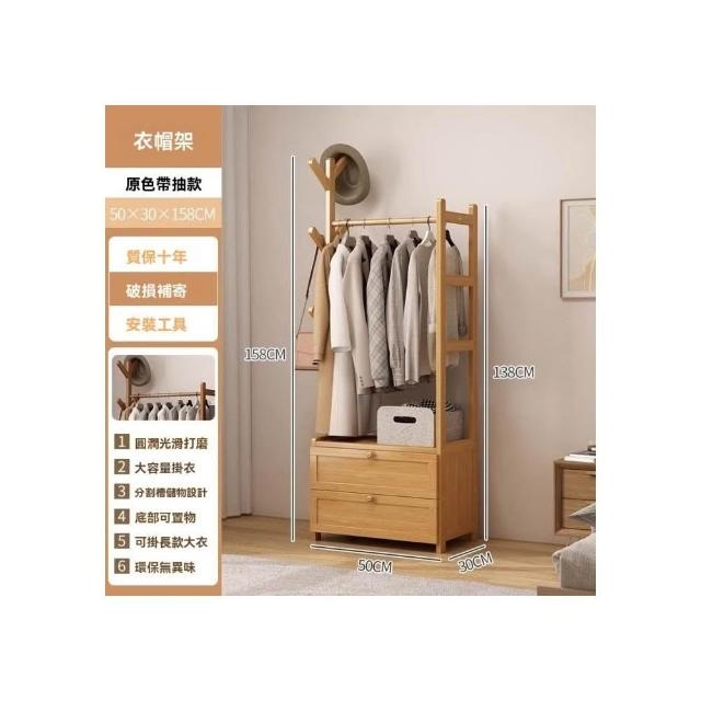 芮芮商行 掛衣架床頭櫃一體實木衣架落地臥室家用床邊衣服掛架置物架衣帽架