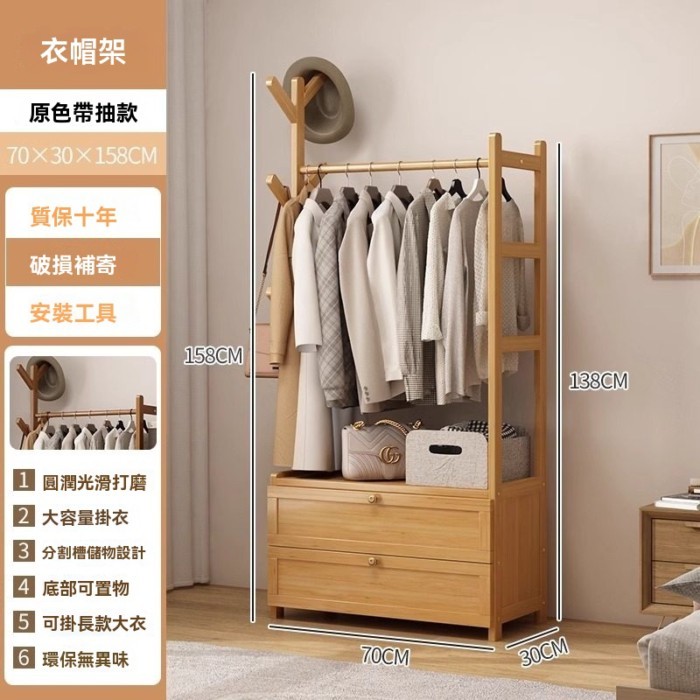 芮芮商行 掛衣架床頭櫃一體實木衣架落地臥室家用床邊衣服掛架置物架衣帽架